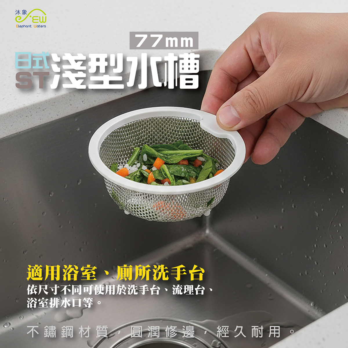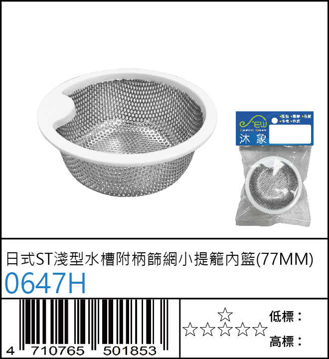 日式ST淺型水槽附柄篩網小提籠內籃(77MM)