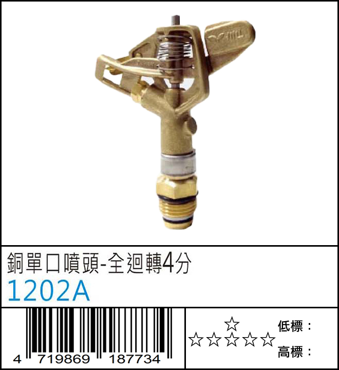 銅單口噴頭-全迴轉4分