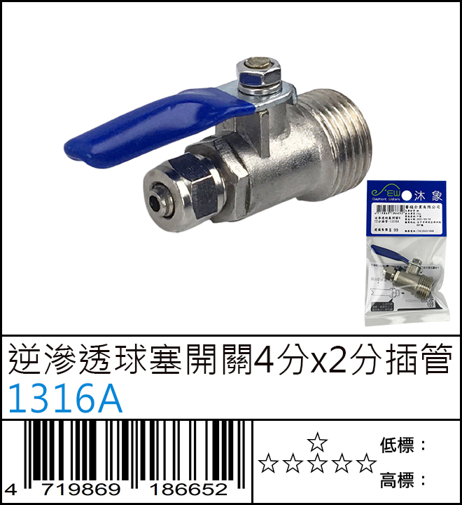 逆滲透球塞開關4分x2分插管